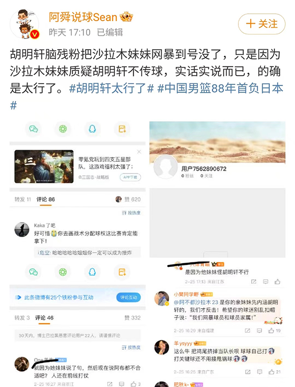 接下来,我们再来说说阿不都这边。在中国男篮输掉比赛之后,阿不都的妹妹在社交媒体上质疑胡明轩不传球,随后大量的媒体涌入了阿不都妹妹的账号进行质疑和嘲讽,这一通网暴,也是让阿不都的妹妹最终关闭了社交媒体,是的,不是关闭评论,而是直接关闭了社交媒体账号。