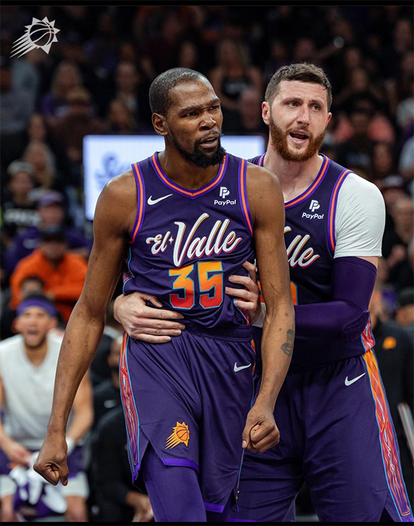 杜兰特和布克带领太阳主场击败湖人,之后独行侠惨败步行者和鹈鹕不敌公牛,太阳34胜24负,直接从西部第8升到西部第5,不过国王击败快船后,太阳的西部第5体验卡到期,到目前为止,太阳排在西部第6,国王西部第5;太阳、国王和鹈鹕三队激烈争夺直通季后赛的机会。