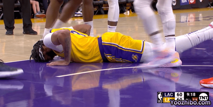 178直播10月21日,NBA常规赛洛城德比湖人大战快船,第三节场上发生惊险一幕,浓眉重摔倒地险受伤,接受治疗佩戴护具。