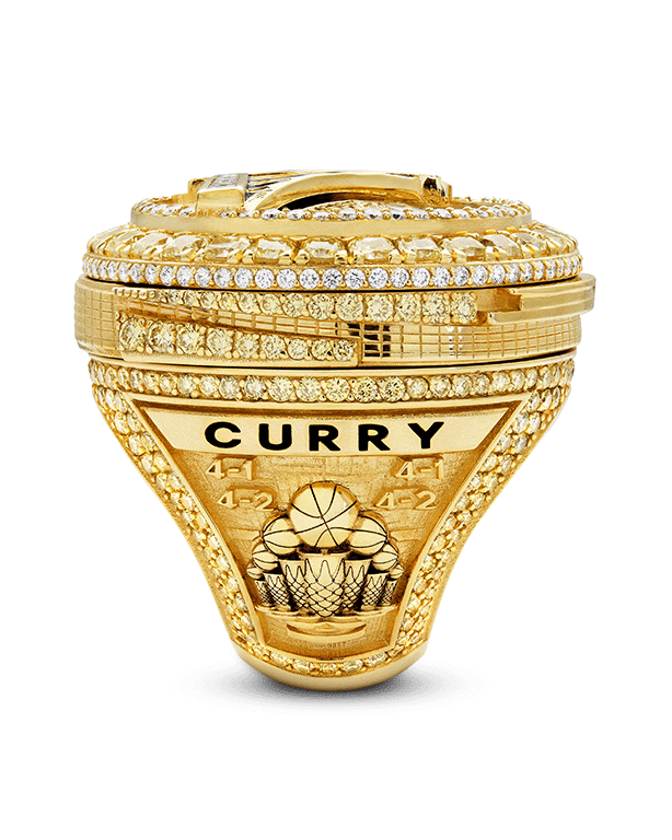 勇士官方晒出总冠军戒指,戒指上刻着球员的名字和球衣号码,刻着勇士logo、2022年总冠军以及季后赛四轮系列赛的比分等字样,金色的戒指上镶着很多钻石;对于卫冕之旅,库里表示他非常有信心能够卫冕。