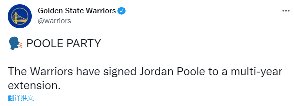 178直播10月17日,勇士官方宣布续约普尔,勇士官推晒照庆祝并且配文写道:泳池派对,勇士已经和乔丹-普尔签下一份多年续约合同;根据之前的报道,双方签下4年1.4亿美元的大合同;签约后普尔发声并且首次回应冲突事件,恭喜维金斯续约。