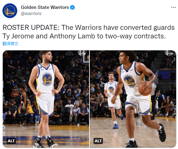 除了续约普尔,勇士还正式裁掉竞争球员包括斯潘塞和杰罗姆-罗宾逊,同时把安东尼-兰姆和泰-杰罗姆的训练营合同转化为双向合同;今年季前赛,杰罗姆场均上场9.0分钟,得到4分1.5助攻;兰姆场均上场12.0分钟,得到2.7分3.0篮板。
