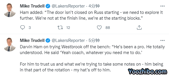 谈到威少今日替补出战,哈姆表示:威少是一名职业球员,他完全理解这一决定;哈姆还透露威少告诉主帅,无论需要做什么,他都愿意接受,都愿意去做。
