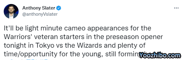 178直播10月01日讯 ,NBA季前赛就要来了,勇士将在东京和奇才打响季前赛揭幕战,卫冕冠军的首战计划曝光,据名记Anthony Slater报道,库里、汤普森等勇士老将首发出战,但仅是短暂的客串出场,队内的年轻球员将获得充足的上场时间和机会。