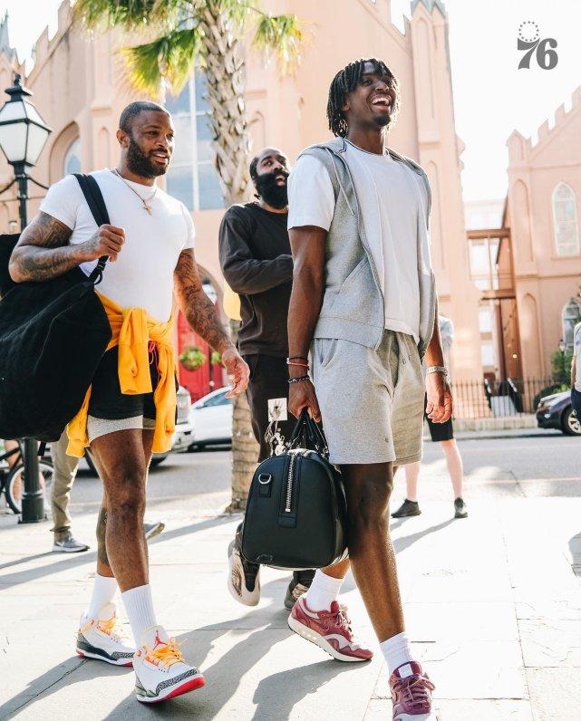 76人的训练营并不在费城,是在南卡的查尔斯顿进行。官网晒出球员们轻松走进训练馆的场景。
