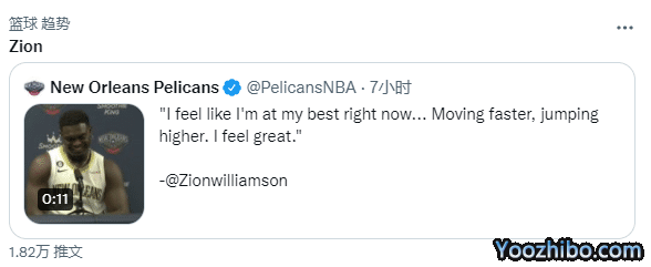 接受采访时,锡安表示他的身体已经100%健康,可以参加新赛季训练营,锡安表示:我感觉现在的自己就是职业生涯至今的最佳状态,感觉自己移动更快了,跳得更高了,我感觉非常棒。