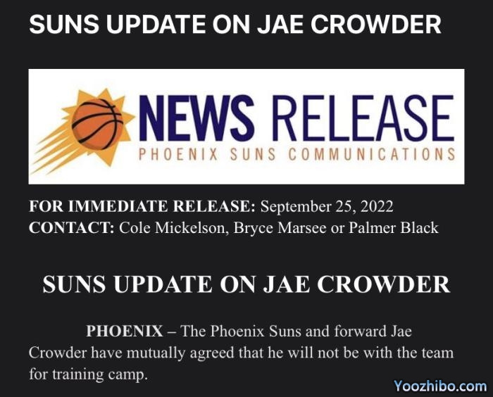 178直播09月26日,太阳官方正式宣布,球队已与克劳德达成不参加新赛季训练营的协议,克劳德将不会参加明日的媒体日和后天开启的训练营;之后克劳德发声告别太阳:感谢太阳,迎接新的挑战,99号很快回归。