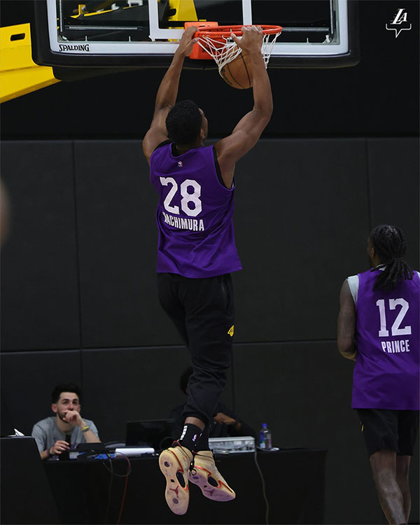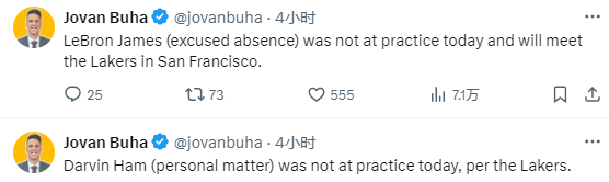 湖人众将归队训练备战勇士,浓眉和里夫斯十分专注,八村垒暴扣,拉塞尔持球进攻,他穿的训练服十分抢镜;据湖人记者Jovan Buha报道,湖人主帅哈姆因个人原因缺席,他将出席周五与勇士的比赛;詹姆斯则是因故缺席训练,他计划在旧金山与球队会合。
