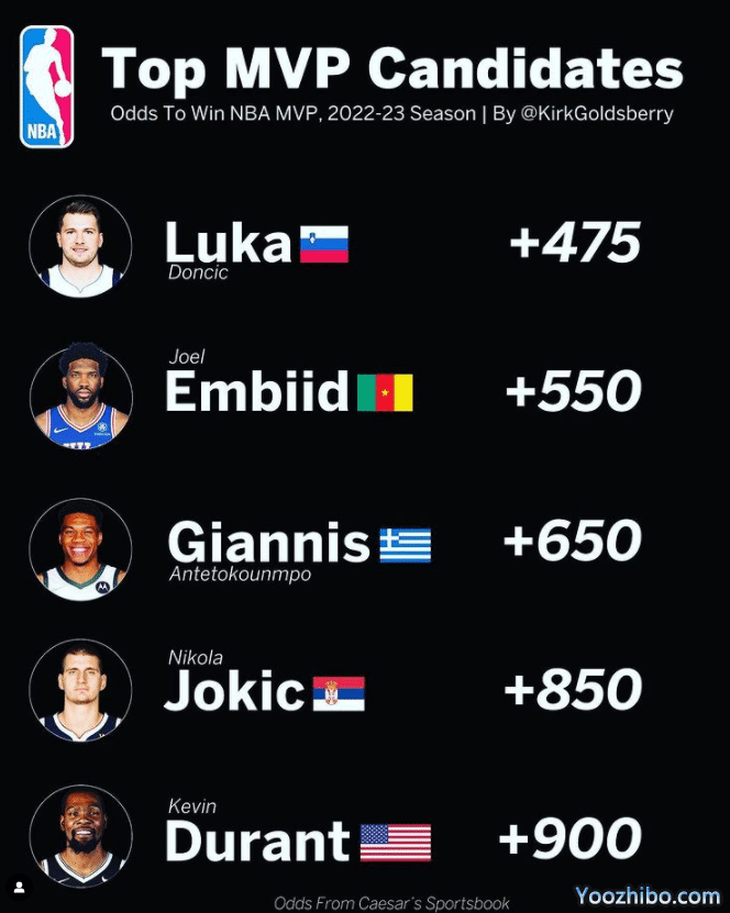 在MVP最新赔率前五榜单上,美国本土球星仅杜兰特一人上榜,国际球星有望连续5年夺得常规赛MVP。