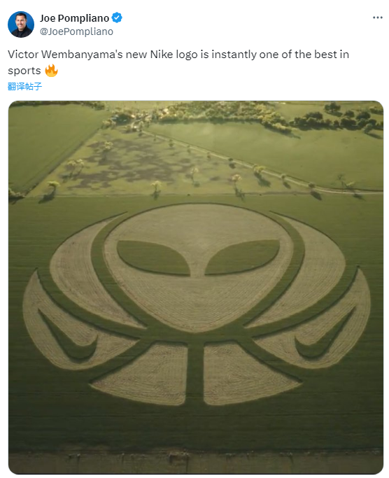 178直播讯 北京时间4月9日,耐克官方发布文班亚马的新logo,配文写道:日全食才刚刚开始。文班外星人造型的新logo 引热议,体育经济记者Joe Pompliano表示文班的耐克标志将成为体育界最佳标志之一。