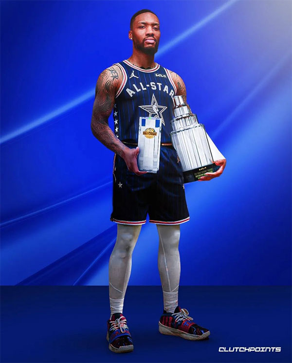 在今年全明星周末,利拉德绝杀特雷-杨从而卫冕三分大赛冠军,之后在全明星正赛上,利拉德一个人命中11记三分并且独砍39分,带领东部明星队大胜西部,利拉德力压哈利伯顿夺得全明星赛MVP,生涯首夺科比-布莱恩特奖。