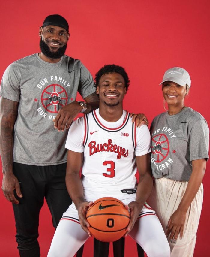 178直播09月07日讯 ,詹姆斯的大儿子布朗尼在社交媒体上晒照引热议,布朗尼晒出身穿俄亥俄州立大学七叶树队3号球衣的定妆照,詹姆斯、萨瓦娜都穿着该大学校队的训练T恤,一家三口合影都是满脸笑容十分开心;布朗尼配文写道:七叶树国度?未承诺(笑脸+大拇指表情)。