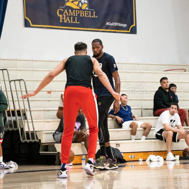 这个休赛期,背部伤愈的小波特和不少球星过招,从他社媒的照片上,我们看到了他与塔图姆、杜兰特、欧文、特雷-杨、奥拉迪波等球星一起打野球的场景。当时他的发色就已经有一些花白,如今更是干脆变成全白。