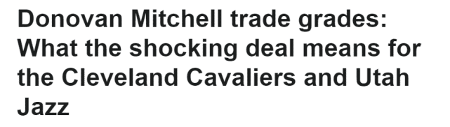 ESPN认为骑士为米切尔送出了太多首轮,而这笔交易的最终成败,取决于骑士在2025-26赛季后能否留住米切尔。目前来看,骑士的交易评级只有C。