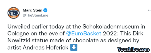 诺维茨基巧克力雕像在此时公开展出,也是为了迎接欧洲杯揭幕当天的诺维茨基国家队14号球衣退役的盛典。据悉,这是德国男篮73年队史上第一次退役球衣。