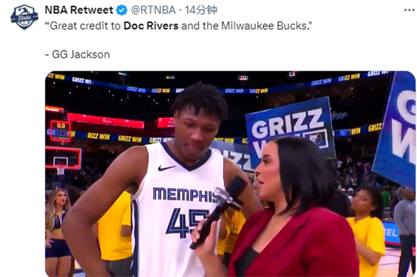 灰熊球员GG-杰克逊谈到获胜,表示:感谢道格-里弗斯和密尔沃基雄鹿。