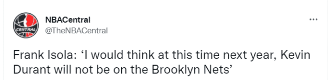 178直播08月30日讯 虽然杜兰特已经撤回了交易申请,但纽约名记弗兰克-伊索拉认为他只会留守篮网一个赛季。北京时间8月30日,伊索拉在节目上表示:“明年的这个时候,我不认为杜兰特还会留在篮网。”