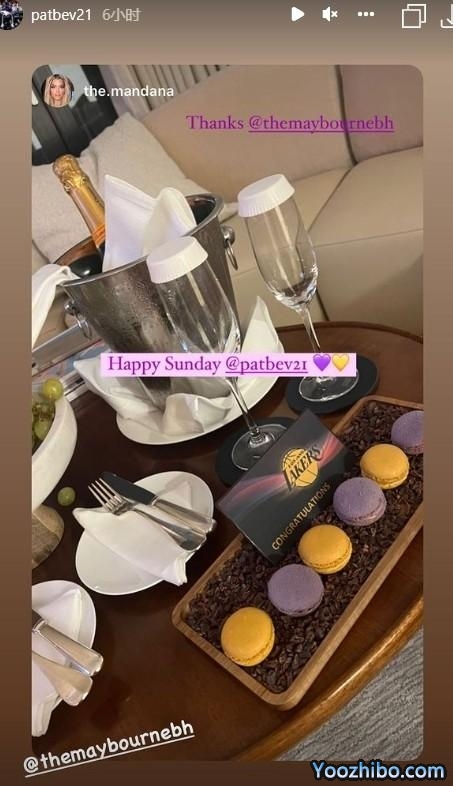 178直播08月29日讯 ,贝弗利女友Mandana更新社媒,晒出了自己和贝弗利一起享用湖人配色的马卡龙和香槟的照片,配文写道:“周日愉快@贝弗利”。Mandana还不忘感谢为他们提供美食的洛杉矶themaybournebh酒店。贝弗利转发了女友的动态,有球迷认为这是黑贝再度向新东家湖人示好。