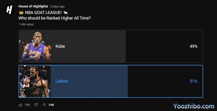 178直播08月29日讯 美媒House of Highlights发起一项投票,对比詹姆斯和科比两大超巨,谁的历史历史地位更高?150万球迷票选结果出炉,詹姆斯获得51%的选票,科比获得49%的选票,选票结果比较接近;不过詹姆斯略占优势,比科比多得2%的选票,相当于多得3万票。