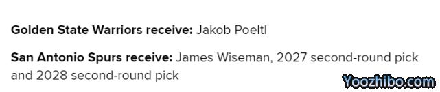 178直播08月25日讯 随着杜兰特逼宫闹剧的结束,联盟还会有什么交易发生吗?北京时间8月25日,美媒Bleacher Report支招勇士3换1升级内线,来提升新赛季卫冕的概率。具体方案是勇士说送出怀斯曼、2027年次轮签和2028年次轮签,得到马刺中锋珀尔特尔。