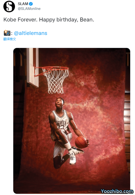 Slam发推直言科比永恒,FIBA官方晒科比身穿美国队10号球衣照,配文写道:真正的传奇,科比今天44岁了,还写道:我们想你了。