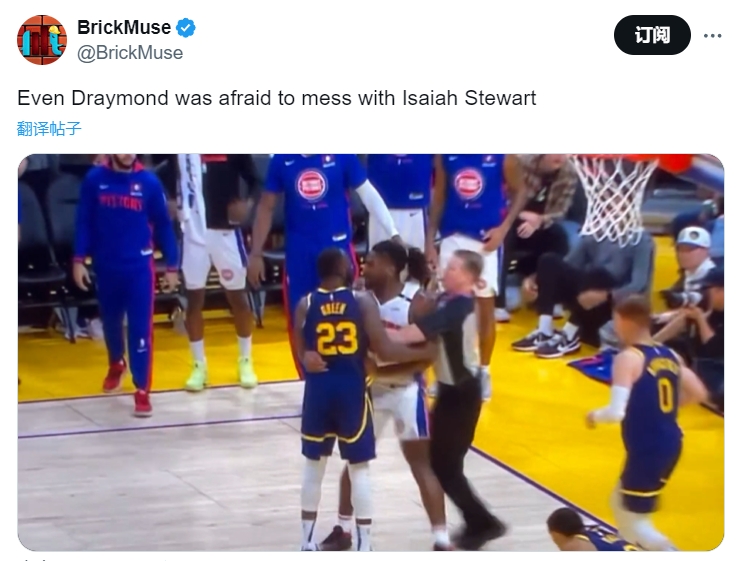 斯图尔特赛前挥拳打人引热议,美媒晒图调侃强如追梦都不敢硬刚斯图尔特。