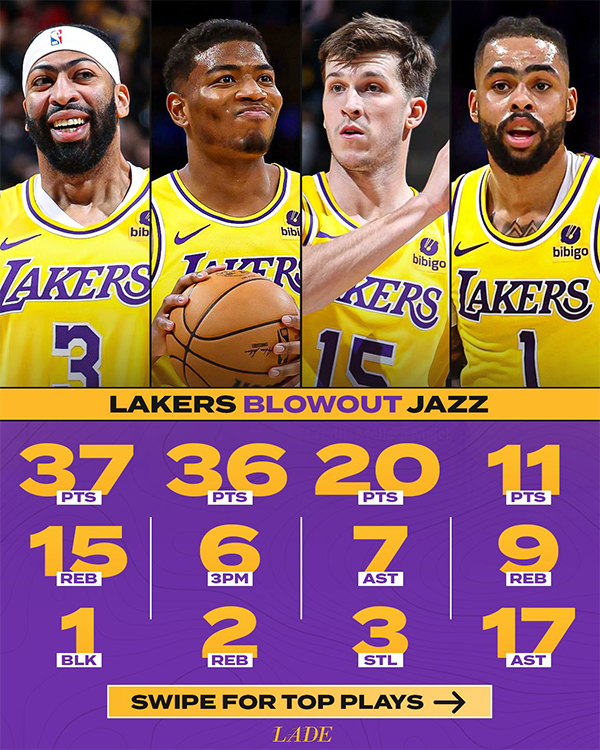 178直播02月15日讯 ,湖人客场轻松击败爵士从而喜提三连胜,以30胜26负西部第九的战绩进入全明星周末;詹姆斯轮休不打,浓眉37分15篮板,八村垒19投13中、三分8中6轰下36分和拉塞尔17次助攻都创纪录;詹姆斯激动发推:我的小兄弟打疯了。