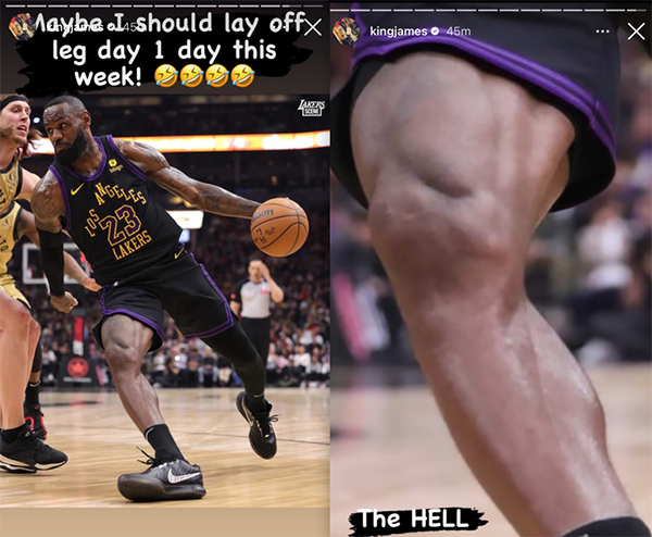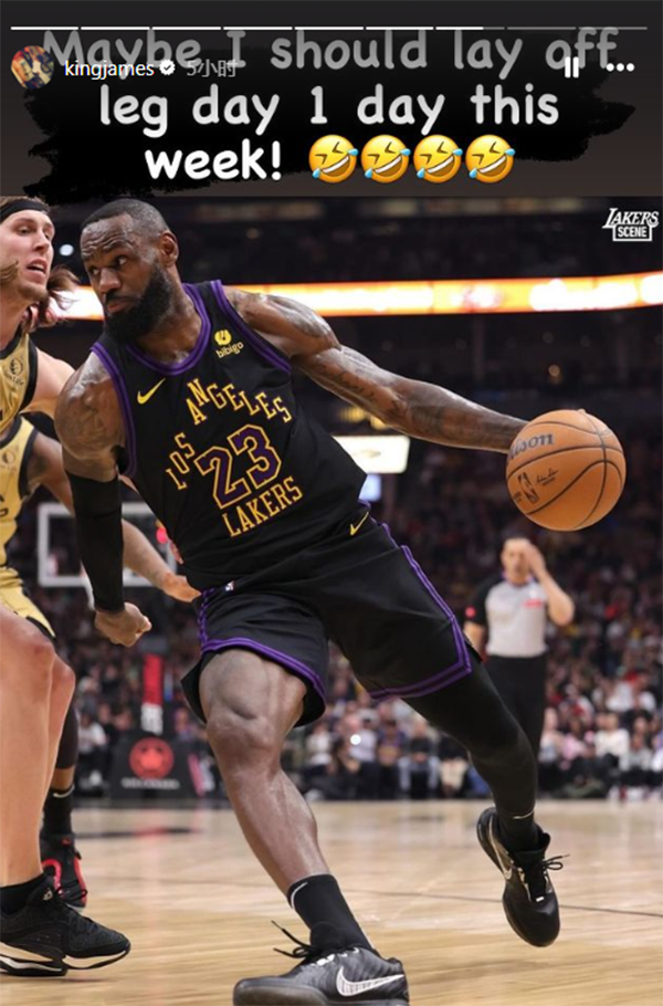178直播讯 北京时间4月4日,39岁的詹姆斯晒出自己在湖人对阵猛龙比赛中的赛场照,粗壮的肌肉大腿十分抢镜,老詹吃惊并且直言也许该停掉一天的练腿日。