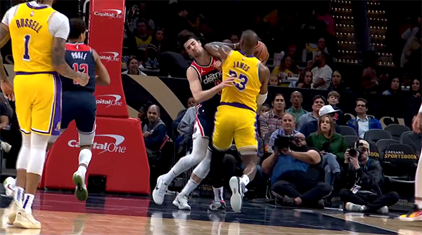 178直播讯 北京时间4月4日,湖人客场击败奇才从而喜提三连胜,詹姆斯全场出战36分钟,18投9中拿到25分9助攻7篮板3抢断,遭争议判罚引热议,上篮肘击阿夫迪亚吃到一级恶犯,可老詹头部被打却只是普通犯规。