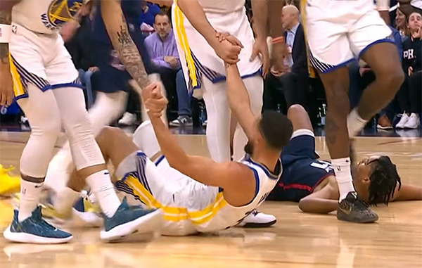 期间库里还遭遇争议判罚,在第一节,库里命中后撤步三分球,还造成对手犯规,本该是打成3+1的机会,但76人挑战成功,裁判示意踢腿进攻犯规,本该是4分的机会,结果变成0分。这一判罚也引发很大的争议,不少球迷吐槽,称这次库里的行为,给进攻犯规,确实很无奈。