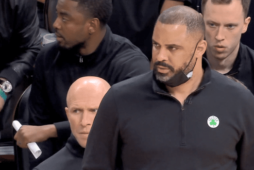 在比赛时间仅剩下0.5秒的情况下,维金斯接球准备投篮,但罗威下手,裁判吹罚犯规。凯尔特人主帅乌度卡怒不可遏,直接冲进场内与裁判理论。裁判没有客气,直接给了乌度卡一个技术犯规。从慢动作来看,罗威的犯规没有问题,也在比赛时间之内。不过库里技犯罚球不中,维金斯两罚一中。首节结束,勇士27-16领先凯尔特人。