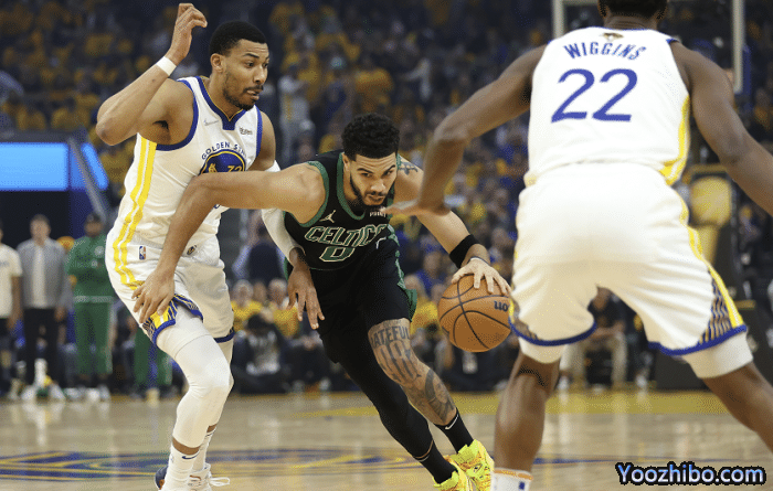 勇士全队第一节投进2记三分,克莱和小佩顿各自投进一记三分,凯尔特人外线5中0。