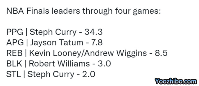 美媒晒出了总决赛迄今为止各项场均数据的领跑者——