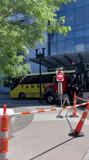 当勇士众将离开酒店,乘坐大巴前往球馆训练时,他们就在不远处用千斤锤敲打制造噪音,直到勇士球员离开。