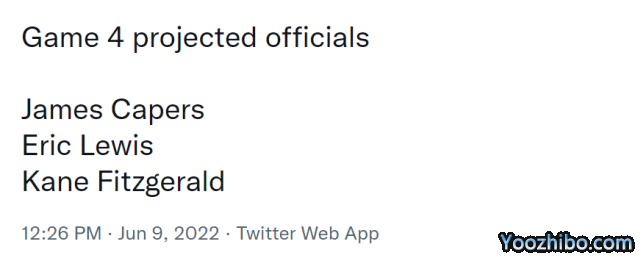 178直播06月11日讯 ,总决赛G4的裁判名单已经提前曝光,执哨这场比赛的裁判将是19号裁判詹姆斯-卡珀斯,5号裁判卡恩-菲兹格拉德和42号裁判埃里克-刘易斯。