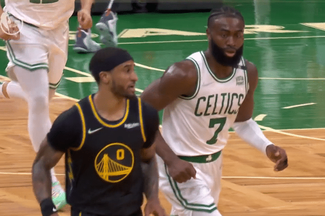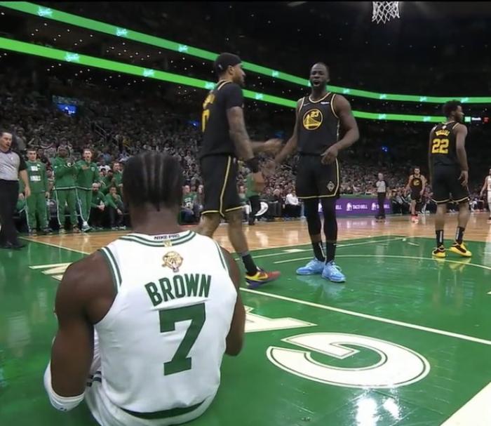 178直播06月09日讯 ,勇士和凯尔特人总决赛G3正式开打,杰伦-布朗第一节再次大爆发,单节9投6中、三分4中3轰下17分5篮板3助攻,晃倒小佩顿太狠,惨遭格林大帽后被喷垃圾话挑衅,绿军球迷为布朗抱不平,全场怒喷格林垃圾。