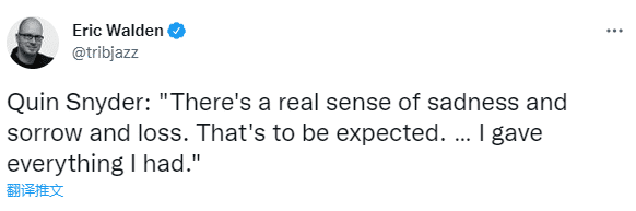 斯奈德还透露他和球员们最后的谈话是“积极而短暂的”,他告诉球员们他要离开了。