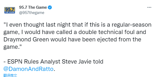 178直播06月07日讯 ,NBA退役名哨、ABC解说嘉宾史蒂夫-贾维在节目中再次谈到总决赛G2格林和布朗之间的冲突事件,直言:我昨晚甚至觉得如果这是一场常规赛,我会吹双方技术犯规,而追梦将(累积2个技犯)被驱逐出场。