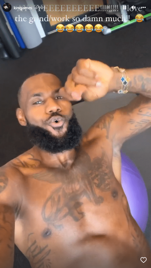 今天詹姆斯又晒出自己赤膊苦练的画面,听着音乐训练,老詹十分开心且兴奋,配文写道:我TM太爱训练了。