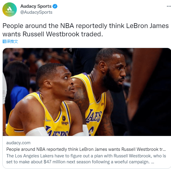 本赛季,詹姆斯场均轰下30+仍旧表现出色,但湖人三巨头仅带队拿到33胜49负的战绩,早早无缘季后赛;下赛季湖人三巨头可能解体,据美媒Audacy Sports报道,NBA圈内人士认为詹姆斯想要交易威少;此前名记MarcStein表示湖人队顶级球星更愿意球队交易走威少,但他们永远都不会直接说出来。