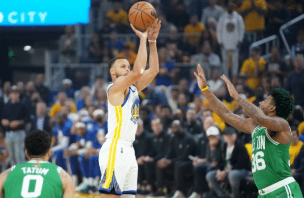 这球其实凯尔特人球员还有犯规动作,导致库里进球之后摔倒在地四脚朝天。此后,勇士一度领先到15分。不过末段,凯尔特人球员发挥,布朗强打得分,怀特和罗威也给予帮助。但伊戈达拉命中关键三分球。三节结束,勇士92-80领先。