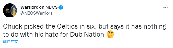 另外巴克利预测绿军6场夺冠 做出这样的预测与自己不喜欢勇士球迷无关。