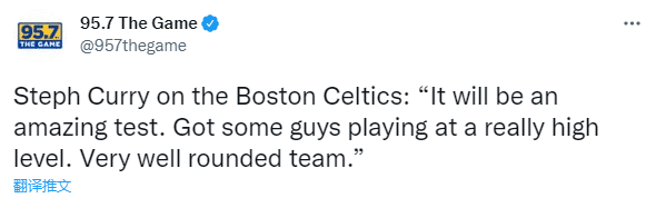 库里谈到总决赛对阵凯尔特人,表示:他们将会带来一次非凡的考验,他们有一些球员打出了非常高水平的发挥,并且,他们还是一支非常全面的球队。