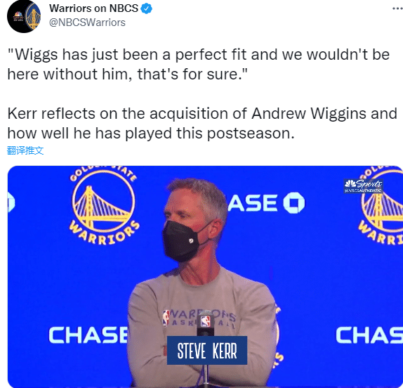 维金斯还透露当初听说会被森林狼交易到勇士时,他非常兴奋;今天谈到维金斯,科尔表示:维金斯非常适合我们,没有他我们就不会在这里,这是肯定的。
