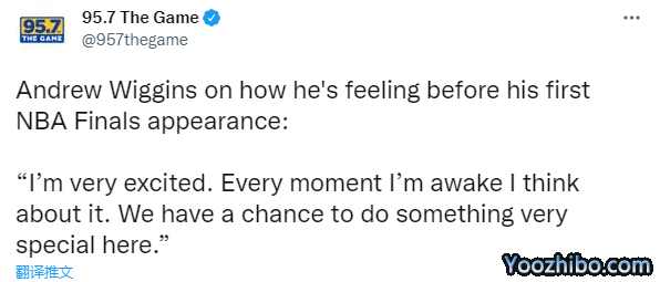 维金斯谈及首次晋级总决赛,表示:我非常兴奋,只要我醒着,我就会不停地想这件事。我们有机会在这个舞台上做一些非常特别的事情。