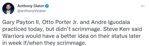 训练之后勇士将帅接受采访,科尔谈到小佩顿、小波特和伊戈达拉的情况,表示:他们都没有参加训练赛,但他们都已经开始训练了,他们的伤情都在进步,而且做得很好。