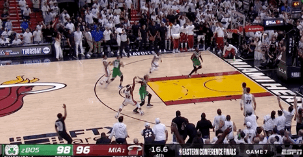 全场落后的热火在末节疯狂反扑,将差距缩小到2分,这个时候凯尔特人进攻未果,热火有绝平或者绝杀的机会,时间还剩下30多秒。巴特勒没有选择稳下来打阵地战,而是直接出手追身三分球,这个球命中就可以帮助热火反超,但可惜的是他投丢了,随后斯玛特两罚全中,斯特鲁斯的连续三分球不进,凯尔特人在客场直接带走了比赛的胜利。