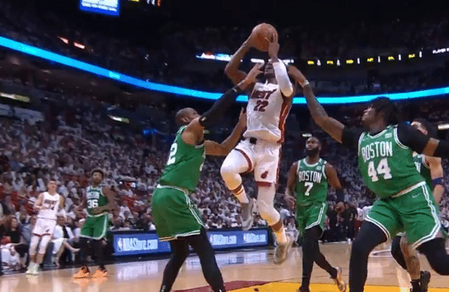 凯尔特人的老将霍福德也有不俗发挥,他除了命中三分球之外,防守端也有很大的贡献。热火悍将斯特鲁斯想要隔扣霍福德,被经验丰富的绿军老探花直接血帽封盖很精彩。