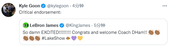 178直播05月28日讯 ,湖人新任主帅已经敲定,雄鹿助教达尔文-哈姆成为湖人第28任主帅,和湖人签下一份4年执教合同,合同金额暂时曝光;詹姆斯已经激动发声,欢迎哈姆执教湖人。