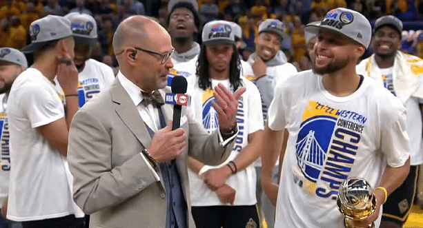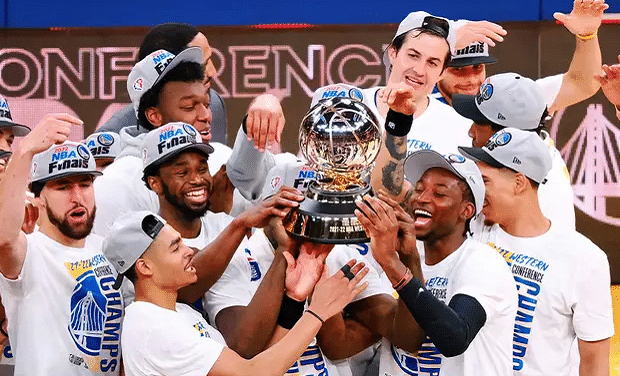 178直播05月28日讯 ,昨天NBA西部决赛落下帷幕,勇士主场以10分优势击败独行侠,系列赛4-1淘汰对手,成功晋级总决赛,时隔3年夺得西部冠军。这场比赛勇士打得气势如虹,克莱表现强势,库里和追梦格林发挥全面,还有普尔、维金斯等人,球队取得胜利之后成功夺冠。库里斩获第一届西决MVP的荣誉,现场举起奖杯,宣布的瞬间克莱兴奋到跳起来。
